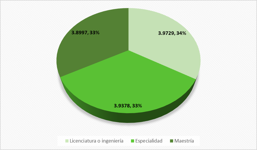 En cuanto al perfil de los docentes que completaron el cuestionario, el 62,7 % labora en zonas urbanas y el 23,7 % en contextos urbano-marginales. El 62 % de los encuestados fueron mujeres y el 38 % hombres. La mayoría (80 %) tiene entre 25 y 44 años, mientras que un 19 % supera los 45 años. En términos de formación académica, un 64 % posee título de licenciatura o ingeniería, un 33 % ha realizado una maestría y un 3 % cuenta con una especialidad, indicando que el 36 % de los docentes tiene estudios de posgrado.